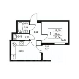 Жилая площадь12,7 м²