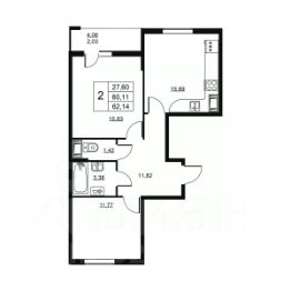 Общая площадь62,14 м²