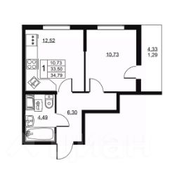 Общая площадь34,79 м²