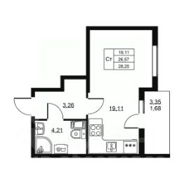 Жилая площадь19,1 м²