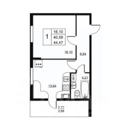 Общая площадь44,47 м²