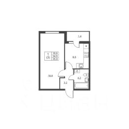 Жилая площадь18,6 м²