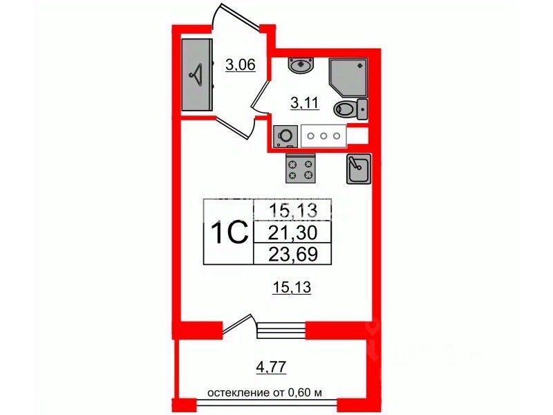 - Площадь: 21,32 м2