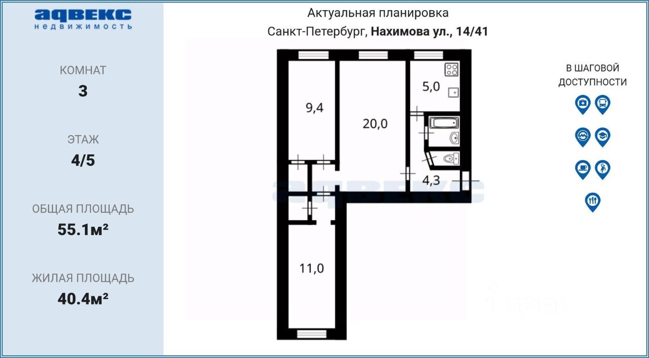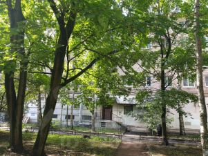 Кирпичный дом с хорошей звукоизоляцией эпохи хрущевской застройки. Квартира двухсторонняя, две комнаты выходят окнами в просторный зелёный двор и одна на Наличную улицу в створе улицы Нахимова. Для большой семьи легко можно оборудовать три изолированные комнаты.