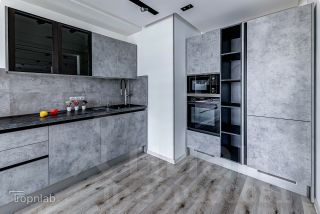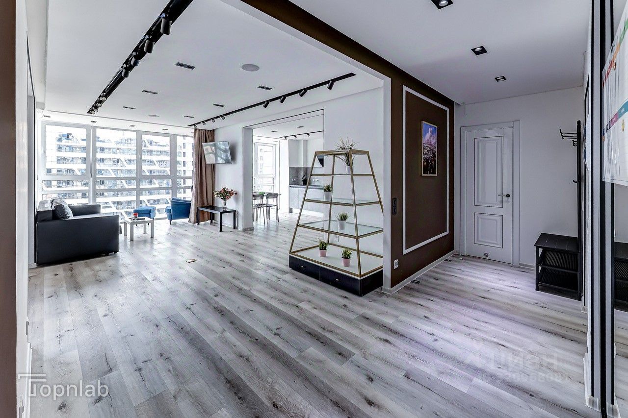 Чистые линии, панорамные окна, наполняющие пространство естественным светом, и нейтральные тона отделки создают ощущение простора и гармонии. Натяжной потолок с точечной подсветкой по всему периметру квартиры, ламинат светлого благородного оттенка и стильная кухня — каждая деталь продумана для жизни с комфортом.