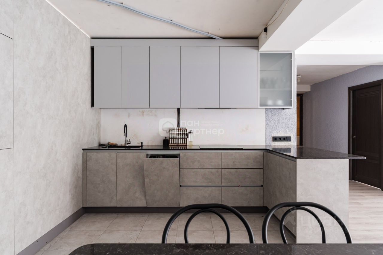 Во- вторых, в квартире сделан качественный ремонт: пол - ламинат и плитка; на стенах декоративная штукатурка и мебельные щиты, натяжные потолки. На кухне установлен кухонный гарнитур с встроенной техникой, сделанный на заказ