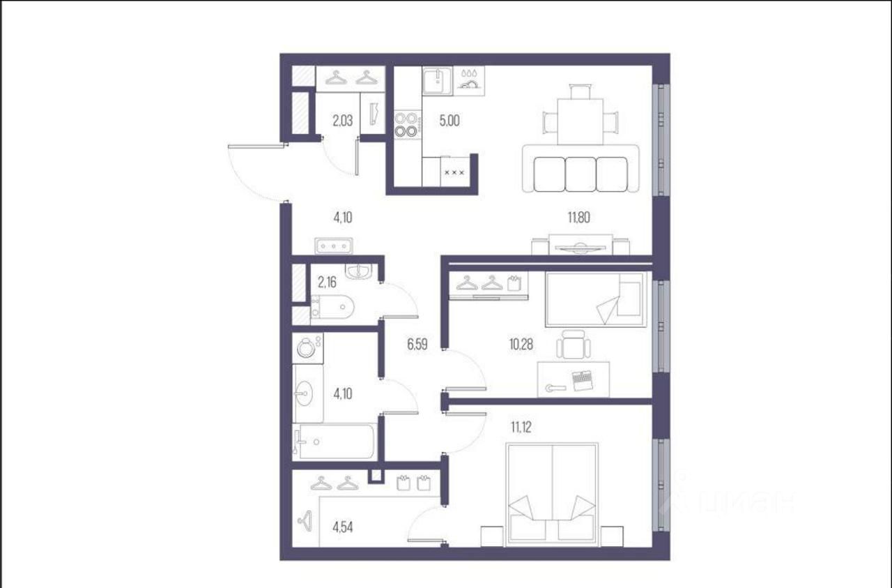 Продаётся евро-трешка 61,9 м² в ЖК бизнес-класса Малоохтинский, 68.