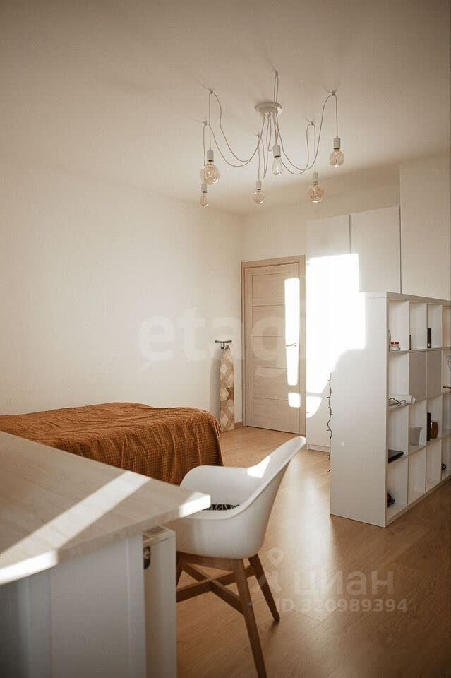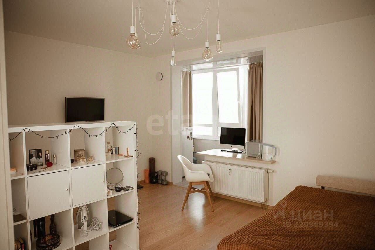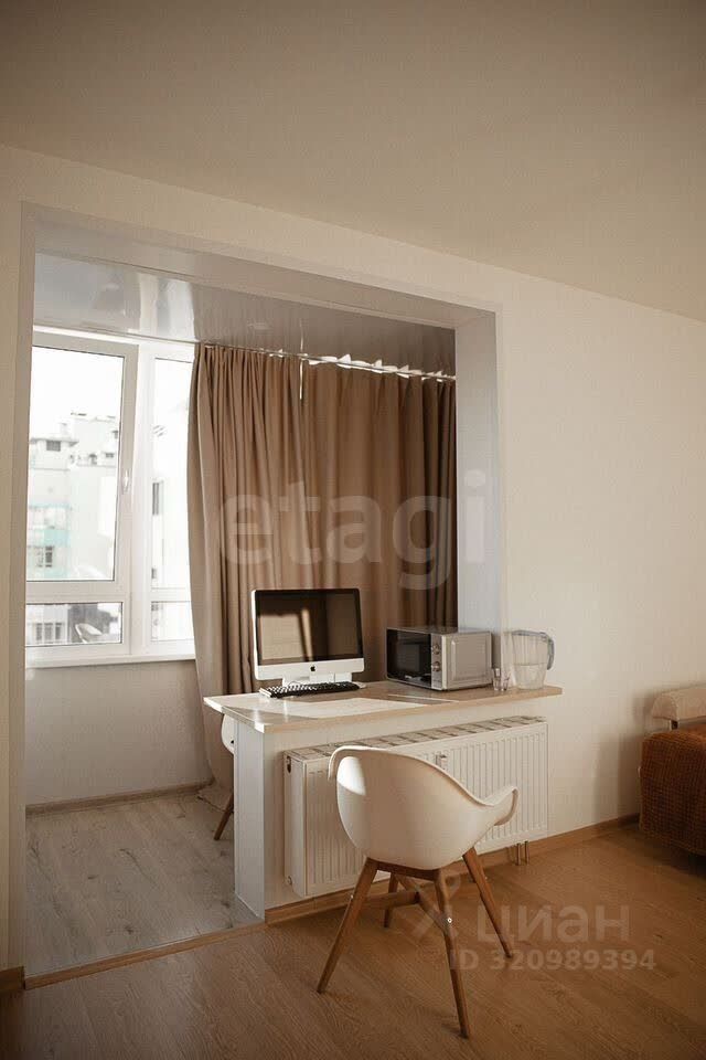 Квартира продается с бытовой техникой и мебелью. Планировочное решение квартиры-студии продумано до мелочей: за счет объединения с лоджией удалось создать дополнительное полезное пространство, зонированное под комфортную зону отдыха.