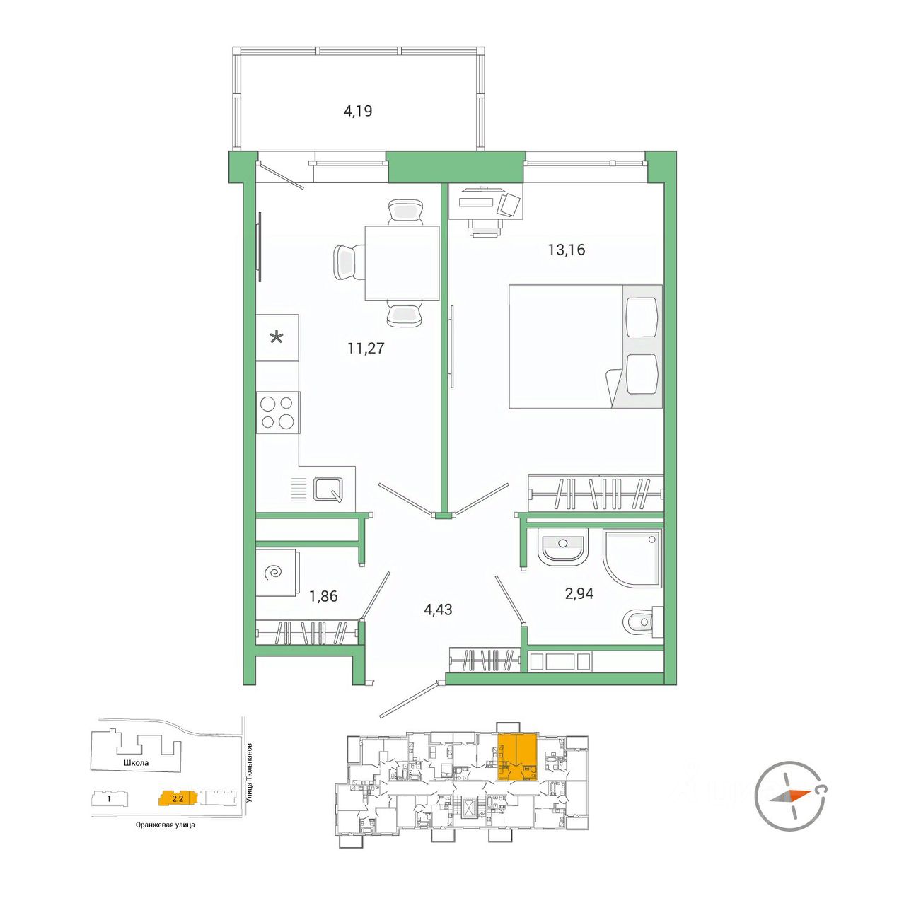 Продаётся 1-комнатная квартира в сданном доме (Оранжевая,12к1), срок сдачи: III-кв. 2022, общей площадью 35.1 кв.м., на 2 этаже. Расположение, транспортная доступность