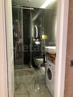 В квартире выполнен современный ремонт с материалами высокого качества, установлена современная сантехника, новая бытовая техника. Санузел совмещенный, оборудован теплым полом. Вся мебель и техника новая, всё остаётся после продажи.