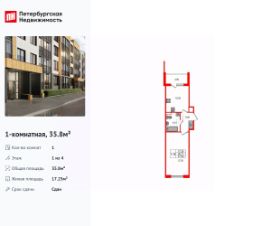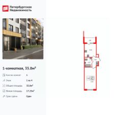 Продается просторная 1-комнатная квартира от застройщика в жилом комплексе "Univer City" в на юге Санкт-Петербурга.