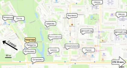 До станций метро "Озерки", "Проспект-просвещения" и "Парнас" можно добраться всего за 20-40 минут на маршрутке, до которой всего 7 минут пешком. На собственном автомобиле путь займёт ещё меньше времени.