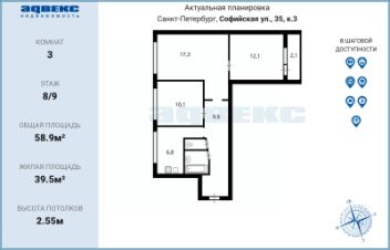 58,9 м²