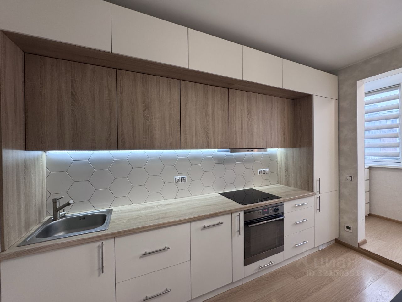 Удобная кухня 11,4 м с встраиваемой техникой. Из кухни выход на утепленную лоджию вид во двор. На лоджии теплый пол, удобный рабочий стол и комод.