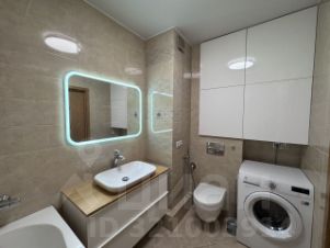 Совмещенный просторный санузел с инсталляцией, теплый регулируемый пол, встраиваемые шкафы.