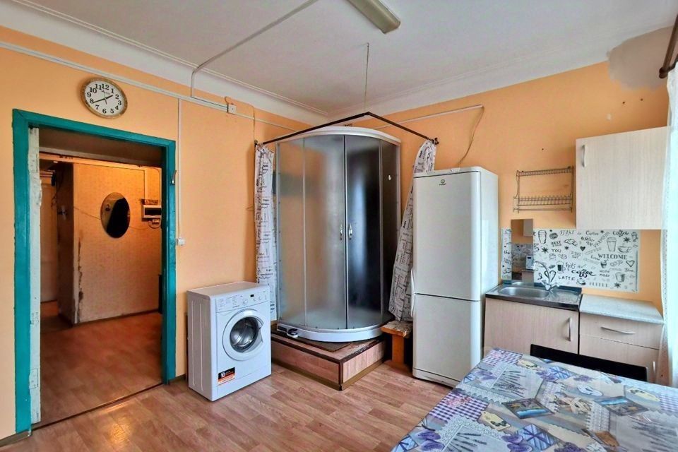 Душевая расположена на кухне, при желании можно сделать перепланировку и установить ванную.