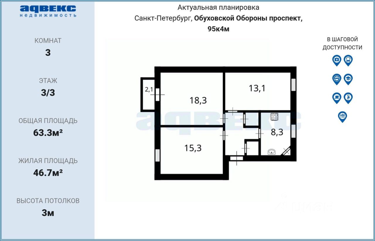 Просторная, тёплая и светлая 3-комнатная квартира в самом сердце Невского района, всего в трех, четырех минутах от метро "Елизаровская".