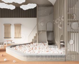 На закрытой и охраняемой территории комплекса находиться: уникальные зоны отдыха и детские площадки, обустроена детская комната, в подземном паркинге предусмотрены зарядки для электромобилей.