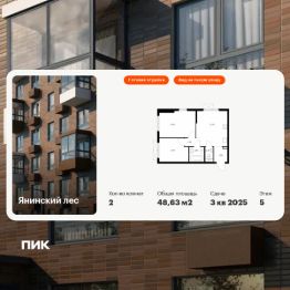 Продаётся 2-комн. квартира площадью 48,63 кв.м на 5 этаже 15 этажного дома (Корпус 6, Секция 3) проекта ПИК Янинский лес. Светлый просторный подъезд на уровне земли, функциональная планировка, большие окна, c отделкой.