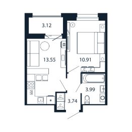 Прямая продажа от застройщика! Готовая Евро-двушка 31.6 кв.м с кухней 13.55 кв.м с чистовой отделкой на 10 этаже в сданном ЖК "Полис Новоселье".