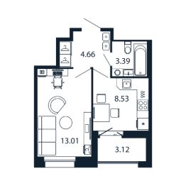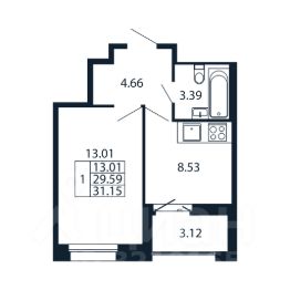 Прямая продажа от застройщика! Готовая Однокомнатная квартира 29.4 кв.м с кухней 8.53 кв.м с предчистовой отделкой на 12 этаже в сданном ЖК "Полис Новоселье".
