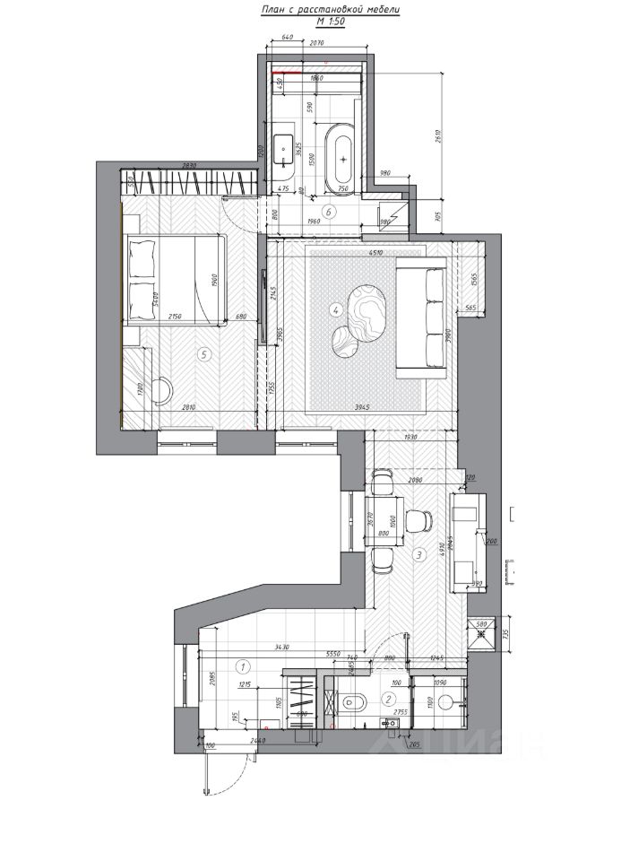 Трёхкомнатная, спроектированная архитектурной студией Скорикова.