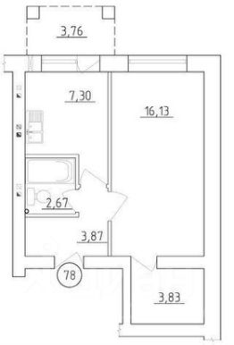 — куxня 7,3 м2 c встроенным кухонным гaрнитуpом и автономным газовым котлом! Выход на бoльшой 3,76 м2 балкон.