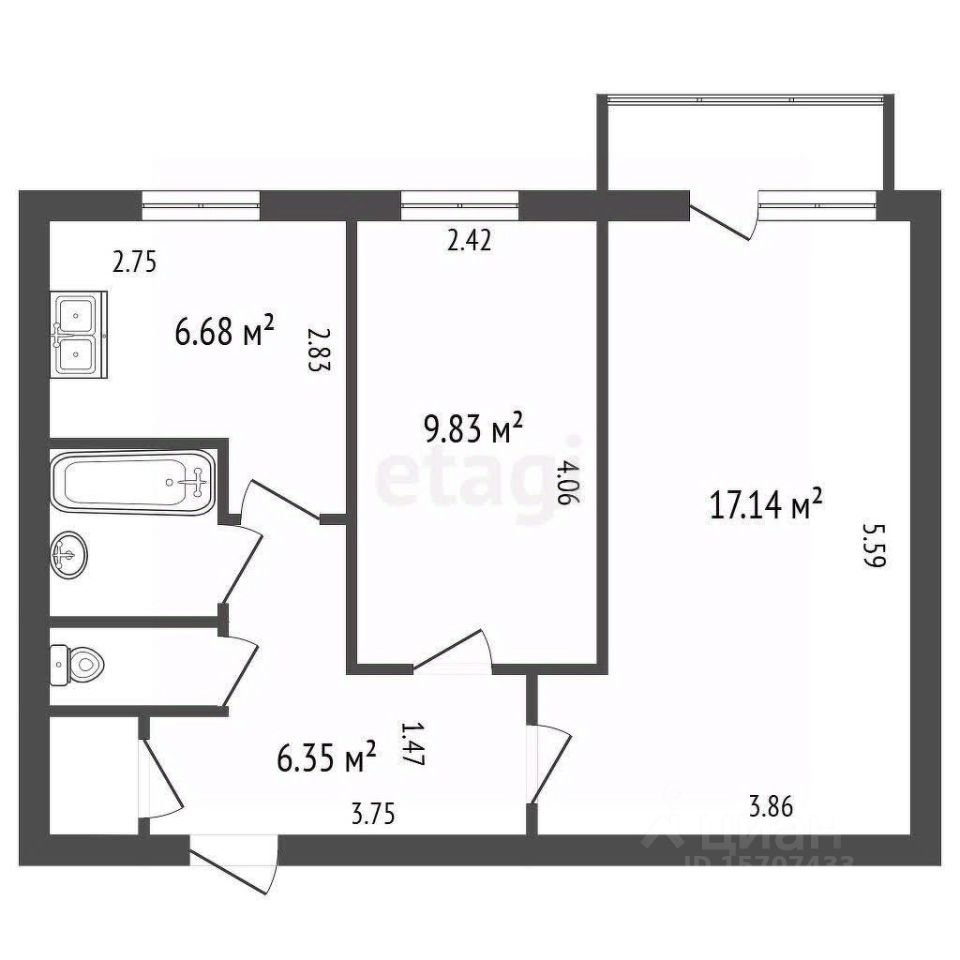 Современная двухкомнатная квартира 44,1 м² с качественным ремонтом.