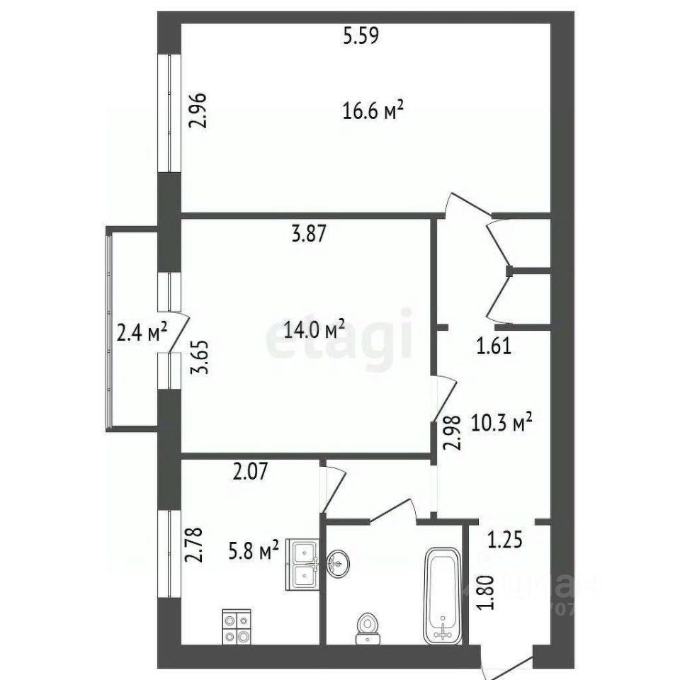 Балкон: 2,4 м²