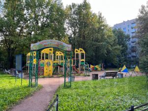 Двор: Зелёная территория с большой детской площадкой и детским садом.