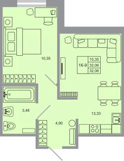 Продаётся 1-комнатная квартира в строящемся доме (Корпус 17), срок сдачи: I-кв. 2027, общей площадью 32.06 кв.м., на 2 этаже. Новый жилой комплекс "Стороны света-2" от застройщика "ГК Прок" расположен по адресу Ленинградская область, Всеволожский район, посёлок Бугры, Тихая улица.