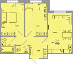 Продаётся 2-комнатная квартира в строящемся доме (Корпус 17), срок сдачи: I-кв. 2027, общей площадью 50.37 кв.м., на 2 этаже. Новый жилой комплекс "Стороны света-2" от застройщика "ГК Прок" расположен по адресу Ленинградская область, Всеволожский район, посёлок Бугры, Тихая улица.