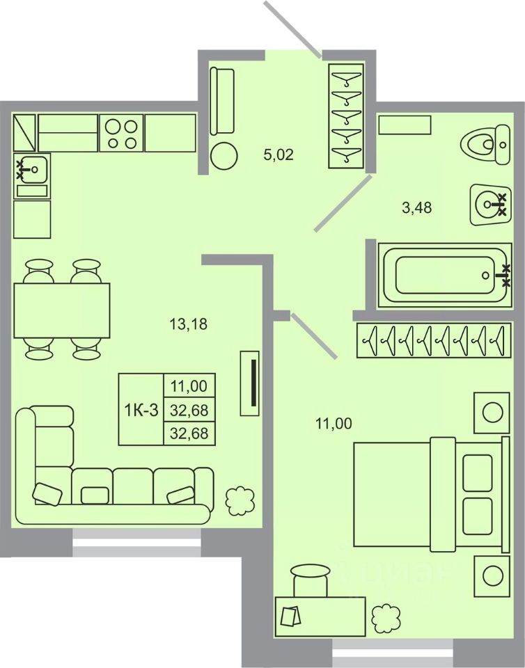Продаётся 1-комнатная квартира в строящемся доме (Корпус 17), срок сдачи: I-кв. 2027, общей площадью 32.68 кв.м., на 3 этаже. Новый жилой комплекс "Стороны света-2" от застройщика "ГК Прок" расположен по адресу Ленинградская область, Всеволожский район, посёлок Бугры, Тихая улица.