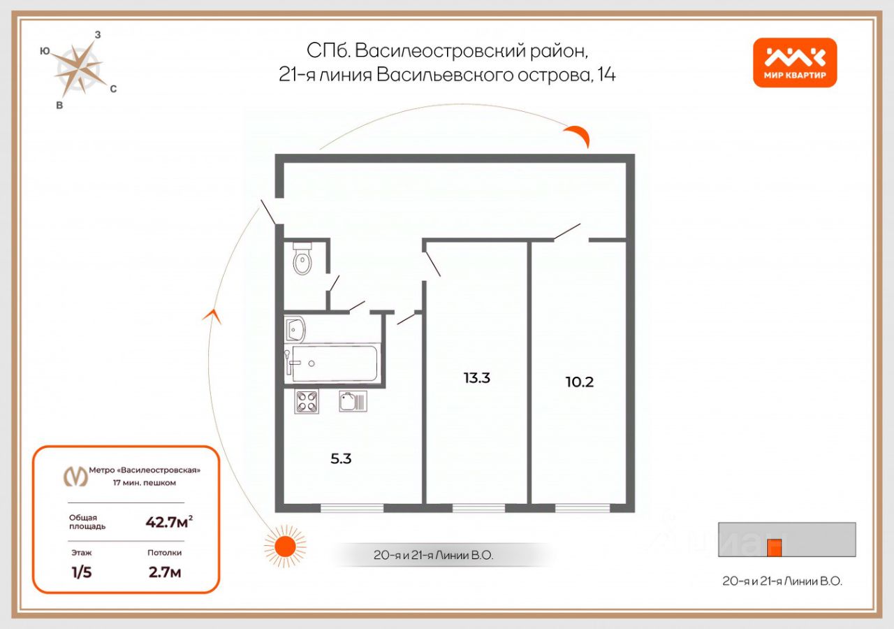 Это не просто квартира, а полотно для Вашего творчества. Готовы начать преображение? Начните свой ремонтный проект уже сегодня и превратите эту квартиру в уютный дом своей мечты!Погрузитесь в мир безграничных возможностей с этой уютной квартирой , расположенной в историческом районе Санкт-Петербурга настоящая находка для ценителей старинного шарма и современного комфорта. Площадь квартиры 43 кв. метра- идеальный холст для Вашего дизайнерского вдохновения, который станет основой будущего Вашего идеального дома. Компактная кухня, две изолированные комнаты и раздельный санузел могут стать отражением Вашего уникального стиля- будь то уютный кантри, современный минимализм или яркий авангард.