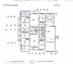 Квартира состоит из 8 комнат, разделена на 2 части общей кухней. В каждой половине (4 комнаты) свой отдельный вход, балкон, 2 раковины, 2 туалета, душ, просторный коридор (30 кв.м).