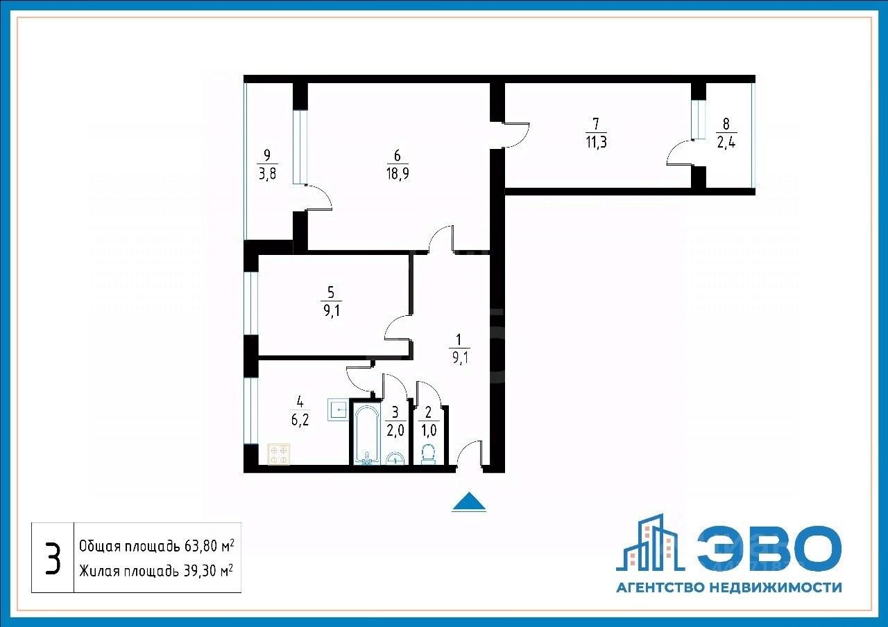 Арт. 113770767 В прямой продаже 3-комнатная квартира с удобной планировкой в пешей доступности до метро Дыбенко! Отличное предложение для тех, кто ценит комфорт, свет и удобство.