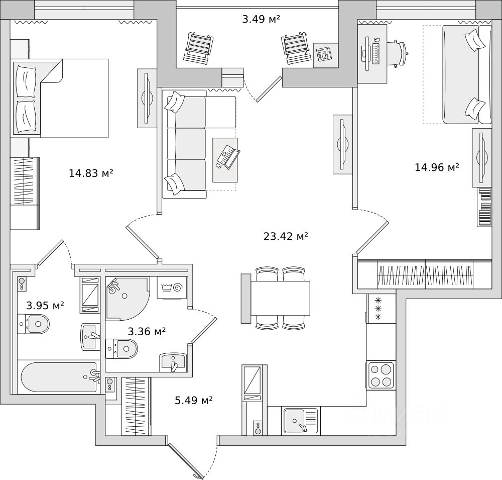 При покупке квартиры без участия агентов дарим сертификат новосела в магазин HOFF на сумму 50 000 рублей. Им можно оплатить не более 15% от суммы покупки.