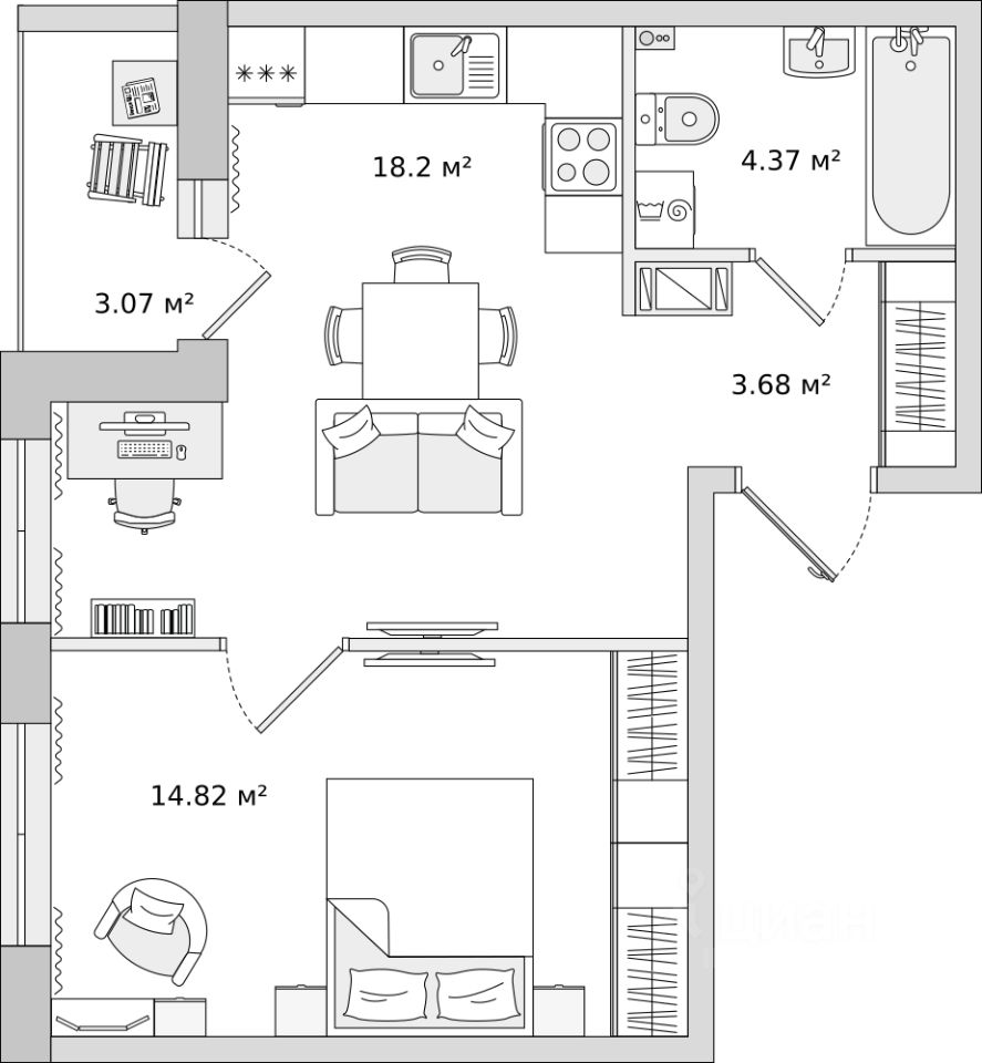 При покупке квартиры без участия агентов дарим сертификат новосела в магазин HOFF на сумму 50 000 рублей. Им можно оплатить не более 15% от суммы покупки.