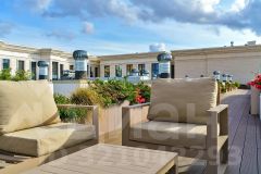 Благородство линий фасада подчеркнуто с помощью эмоциональной архитектурной подсветки, которая подстраивается под время года и время суток и создаёт комфортное ощущение в любой момент времени. На крыше находится просторная терраса с мебелью, откуда жителям открывается восхитительный вид на главные доминанты Санкт-Петербурга.