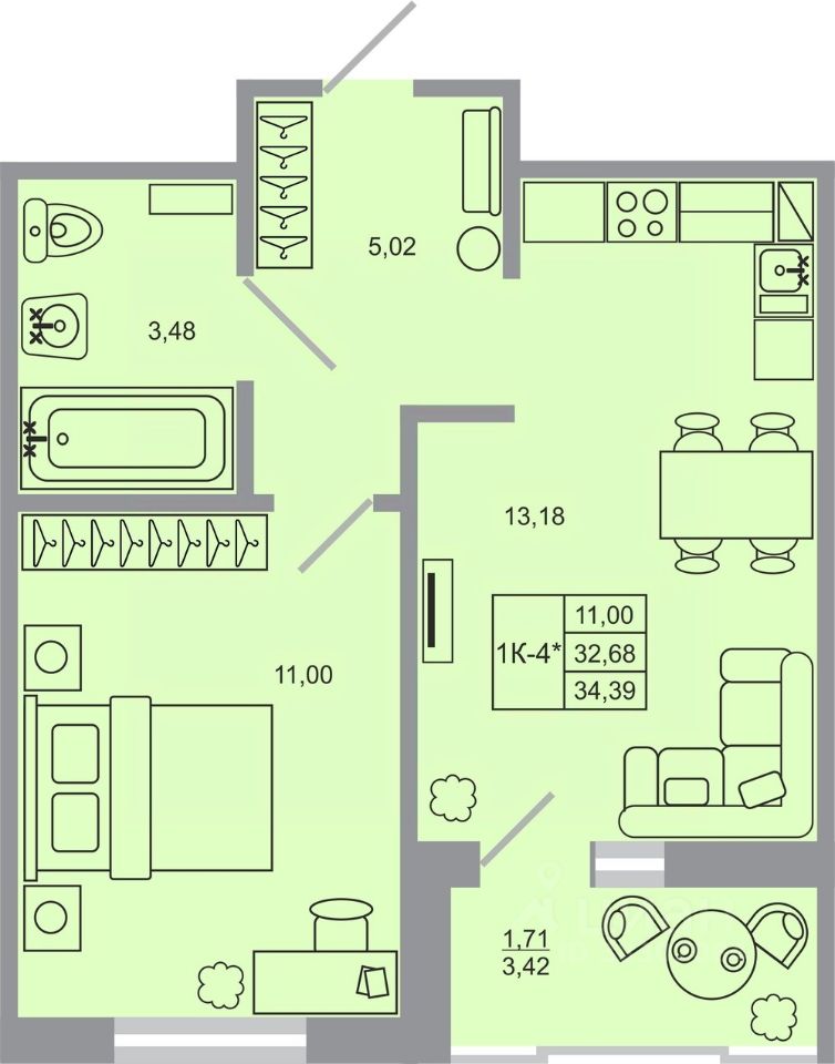 Продаётся 1-комнатная квартира в строящемся доме (Корпус 17), срок сдачи: I-кв. 2027, общей площадью 34.39 кв.м., на 11 этаже. Новый жилой комплекс "Стороны света-2" от застройщика "ГК Прок" расположен по адресу Ленинградская область, Всеволожский район, посёлок Бугры, Тихая улица.