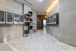 - В облицовке фасадов применяется штукатурка светлых оттенков, они оформлены закругленными балконами. - Дома оснащены бесшумными скоростными лифтами и кладовыми помещениями на этажах.