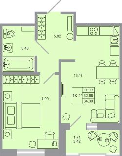 Продаётся 1-комнатная квартира в строящемся доме (Корпус 17), срок сдачи: I-кв. 2027, общей площадью 34.39 кв.м., на 13 этаже. Новый жилой комплекс "Стороны света-2" от застройщика "ГК Прок" расположен по адресу Ленинградская область, Всеволожский район, посёлок Бугры, Тихая улица.