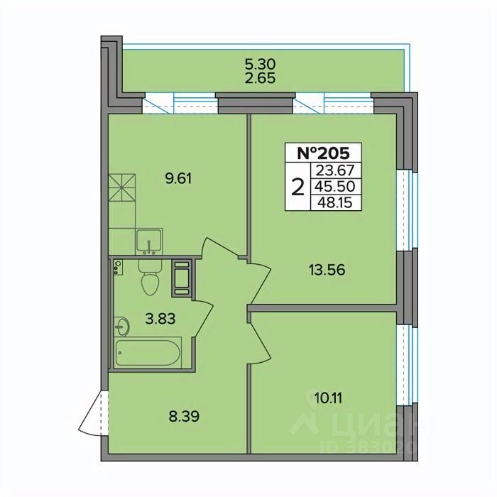 Общая площадь48,15 м²