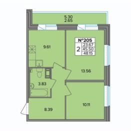 Продаётся 2-комнатная квартира в сданном доме (Ленсоветовский, 19к2 (Корпус 1)), срок сдачи: II-кв. 2025, общей площадью 48.15 кв.м., на 9 этаже. Жилой многоквартирный дом от застройщика "СЗ Смарт".