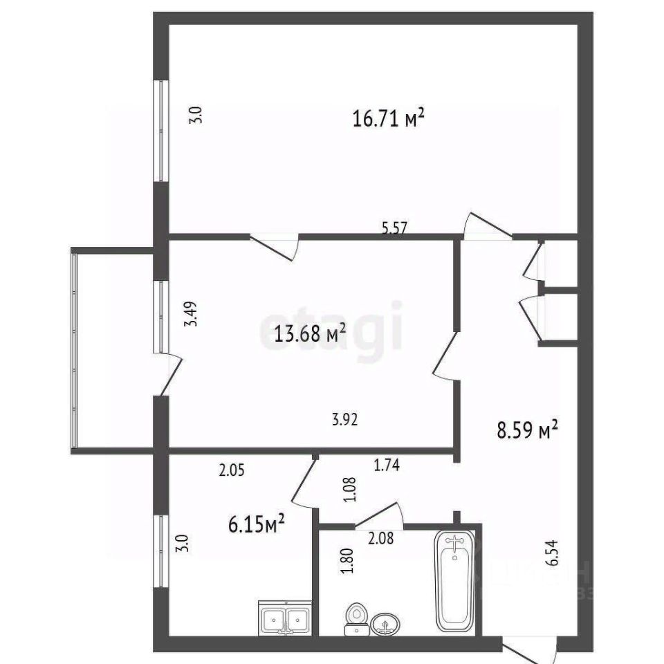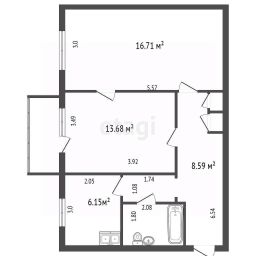 Планировка: просторная, эргономичная, включает две изолированные комнаты площадью 16,71 м² и 13,68 м² и удобную кухню с отдельной кладовкой-холодильником