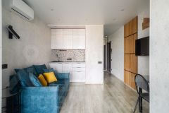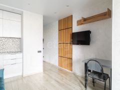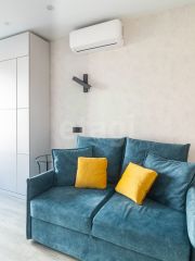 Продается студия с качественным ремонтом по дизайн-проекту, площадью 26,5 кв. м плюс балкон 3,5 кв. м в современном монолитном доме 2021 года постройки на улице Полевая Сабировская. Объект находится на 21-м этаже, что обеспечивает панорамные виды, обилие естественного света и высокий уровень приватности. Квартира оформлена в собственности, дополнительно застрахована до июля 2026 года.
