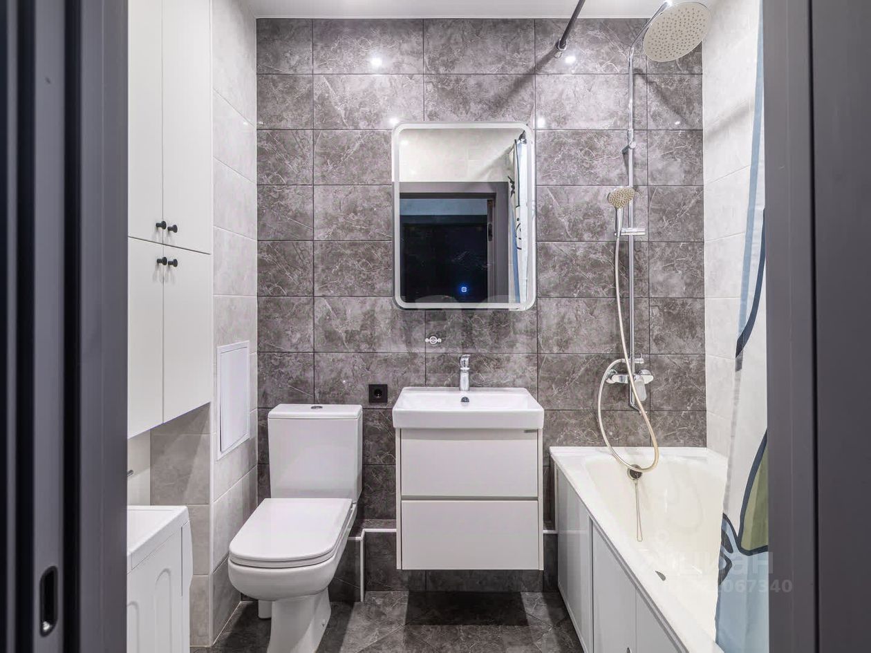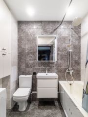 + Смеситель Grohe, ванна чугунная, Laparet плитка, краны Am Pm, зеркало с регулируемой подсветкой, раковина Santek, Aquaton тумба, Cersanit унитаз, бойлер, полотенцесушитель Margroid Thermex, LG стиральная машина корейской сборки