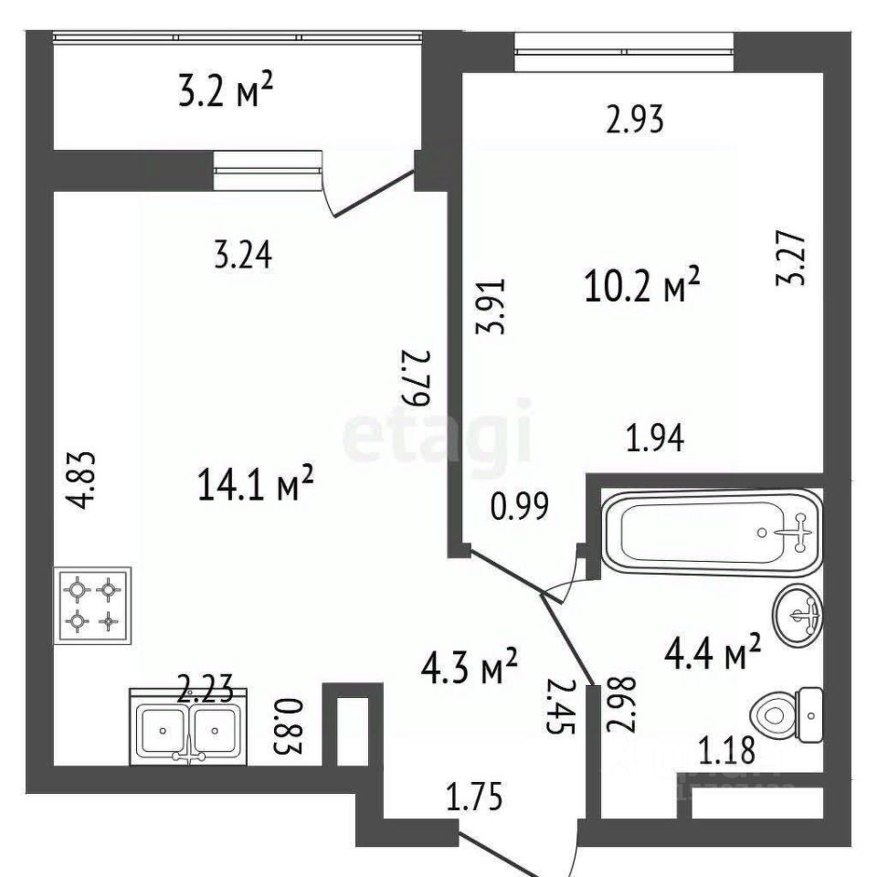 ПРОСТОРНАЯ однокомнатная квартира с кухней-гостиной в Буграх!