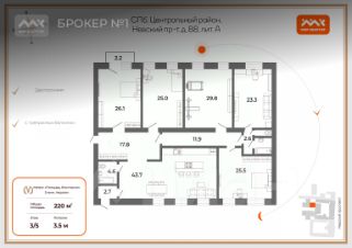 Сегодня у вас есть уникальная возможность приобрести просторную квартиру в 240 кв. метров и сделать ремонт на свой вкус! В квартире нет внутри несущих стен, что открывает большие возможности дизайн-проекта, при этом 2 санузла и 2 входа!