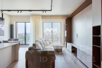100 кВ метррв грамотного пространства: кухня-гостиная с диванной группой с выходом на открытый большой балкон, где размещена уличная мебель; 2 спальни и кабинет с видом в строну внутреннего благоустроенного двора.